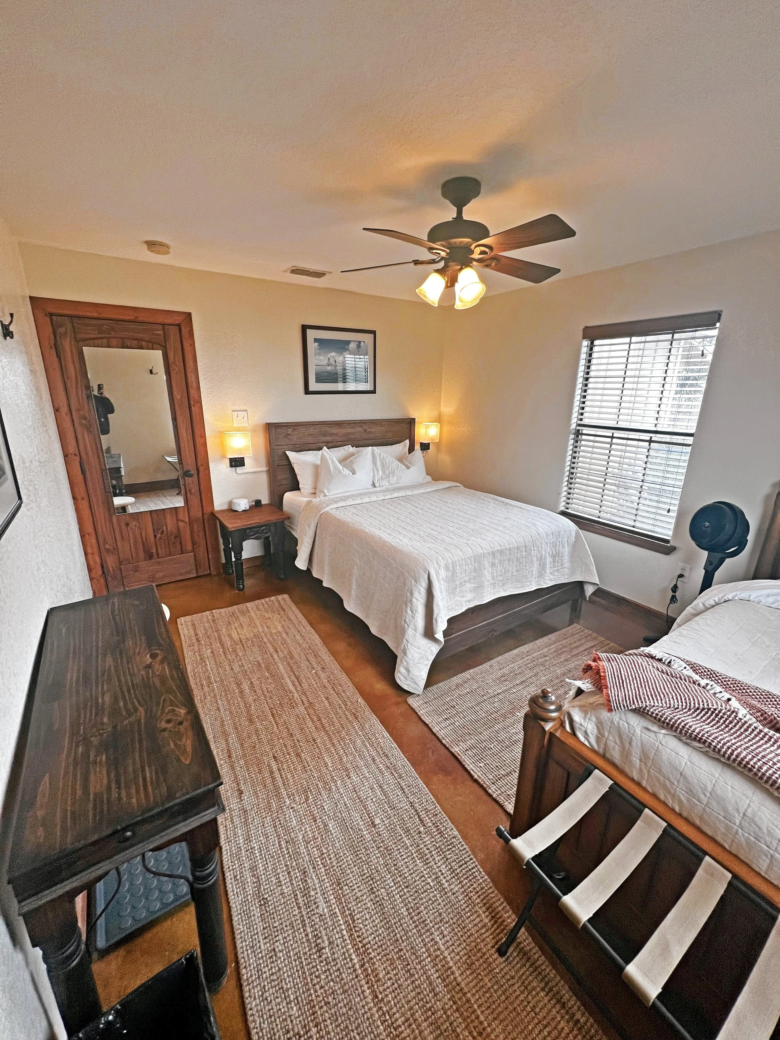 With a queen and twin bed in each of the 4 rooms, the lodge can host up to 12 guests. An additional “Cook’s Room” off the kitchen can be setup as an office or single bedroom if a cook isn’t included in your stay.